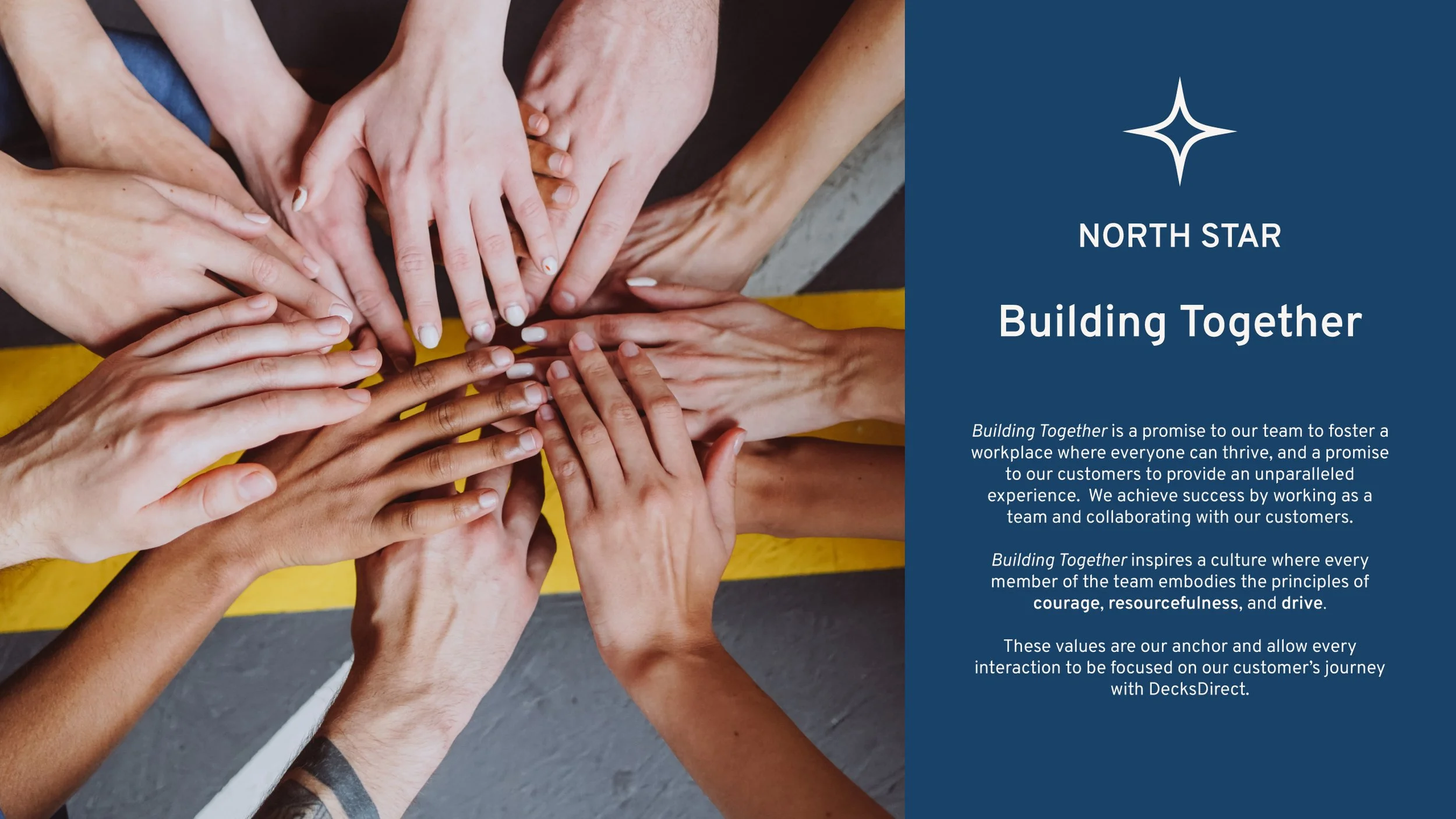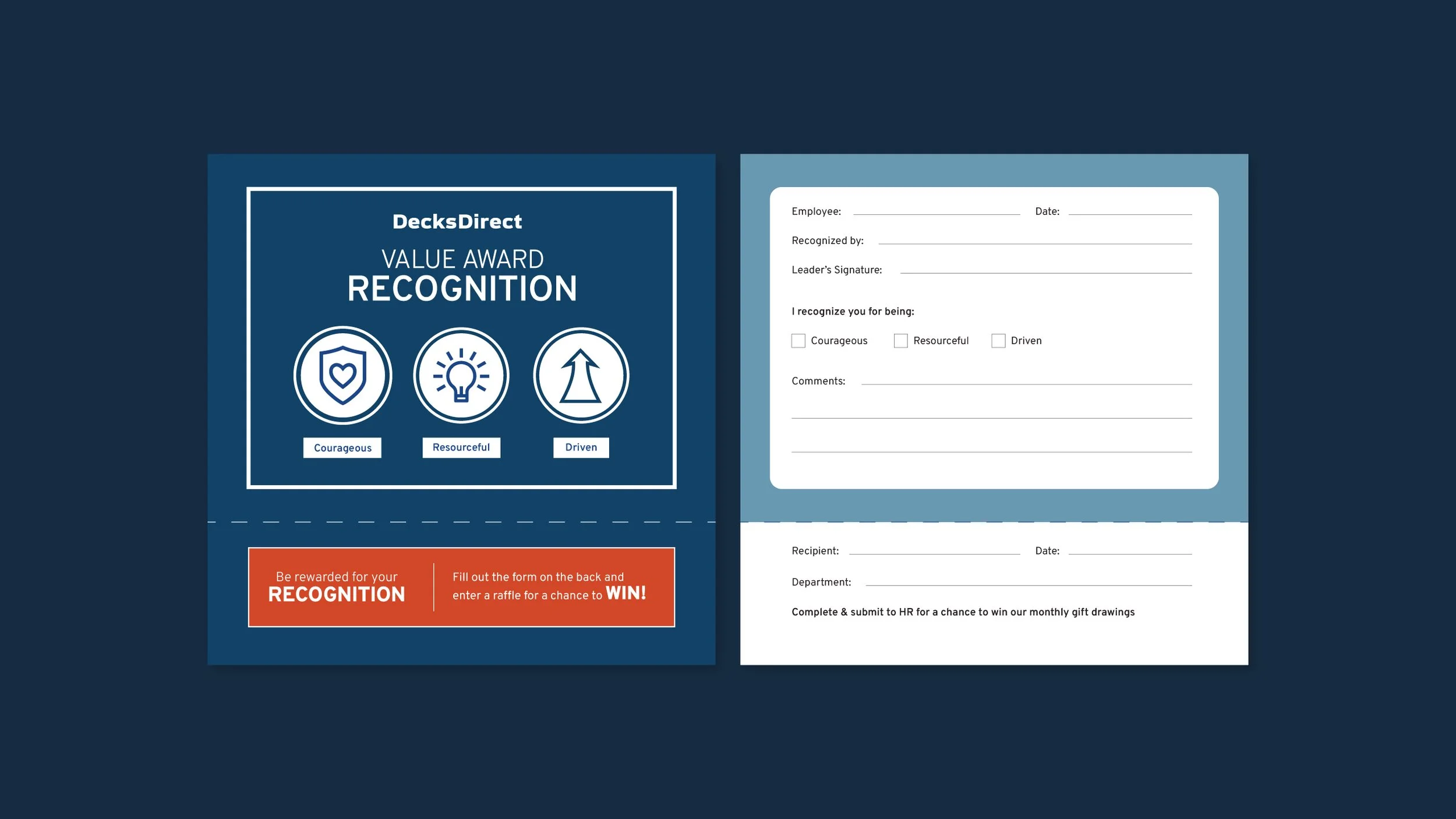I was approached by HR to create a slideshow presentation that spoke on the values and culture of DecksDirect. The content in this deck came from a series of roundtables conducted with our staff on what’s important to each individual as a DecksDirect employee.