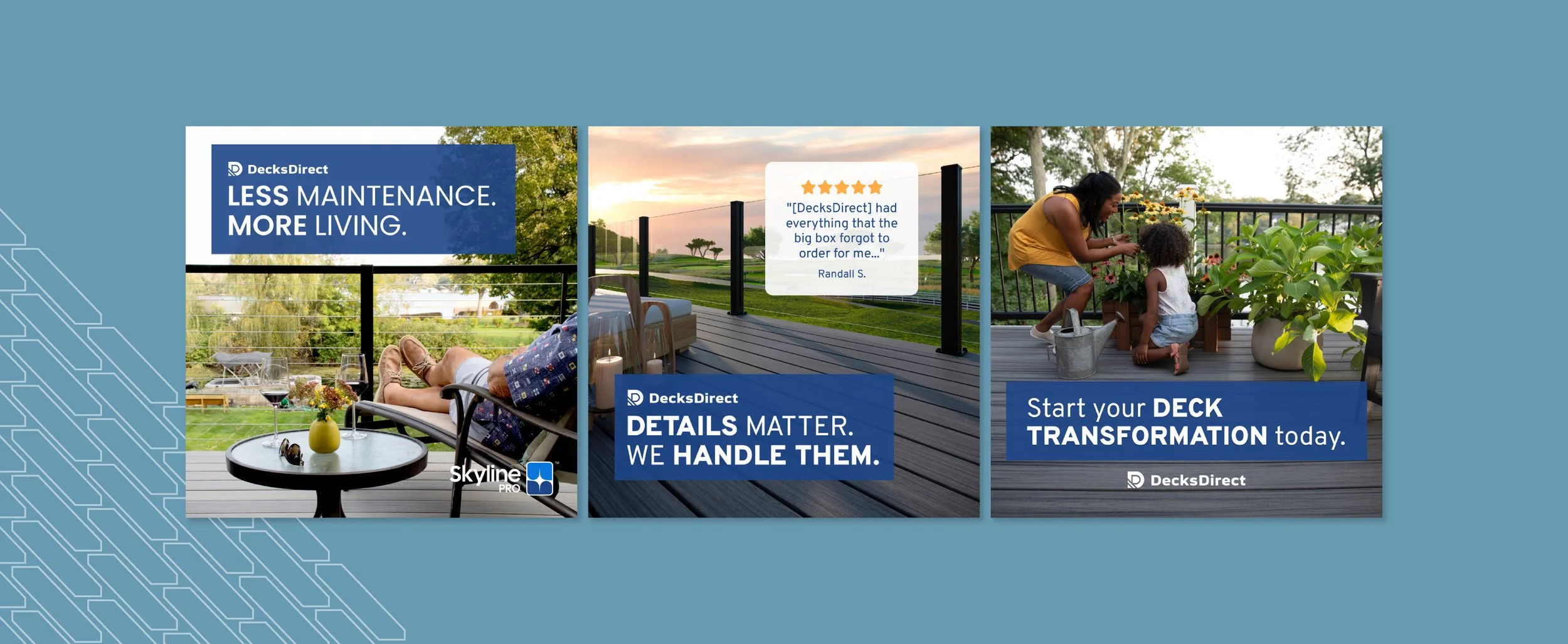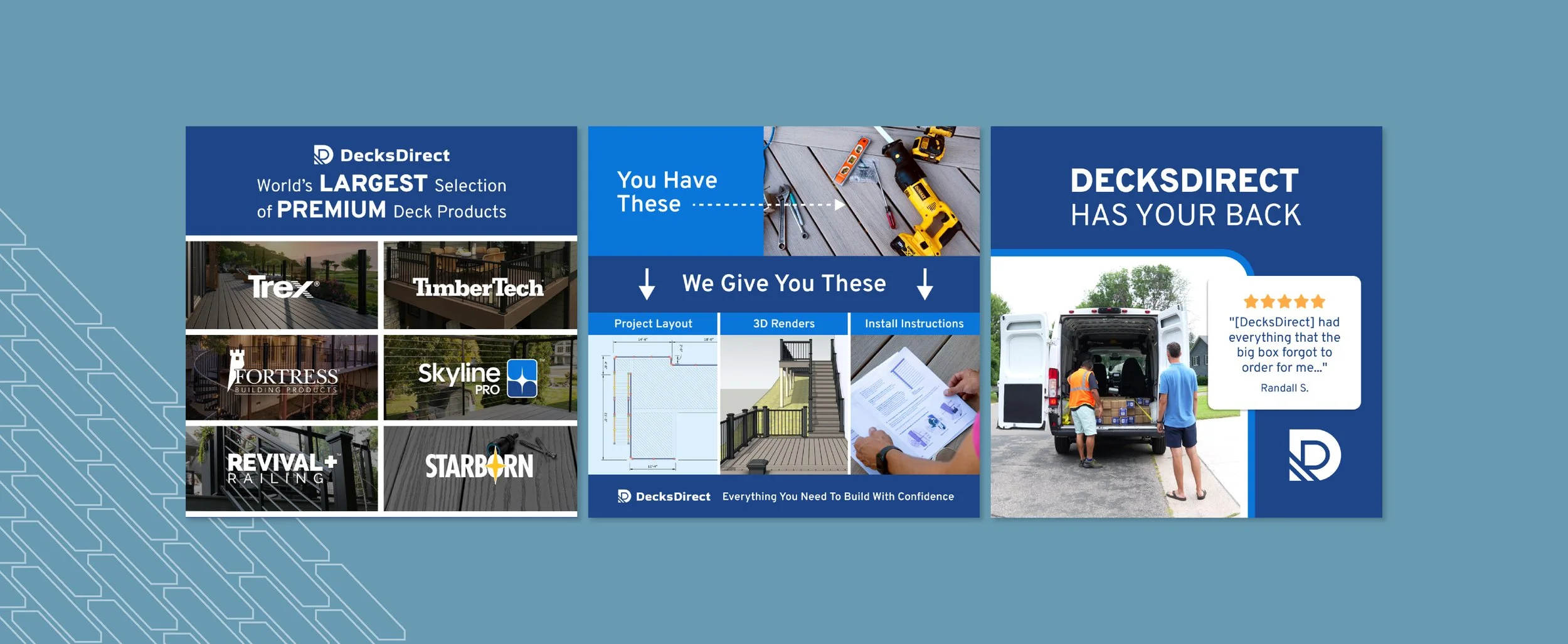 As a one-man design team at DecksDirect, it was determined that an outside agency, Propaganda, Inc would be crafting a new rebrand for DecksDirect that would include a new logo, new colors, and new typeface.