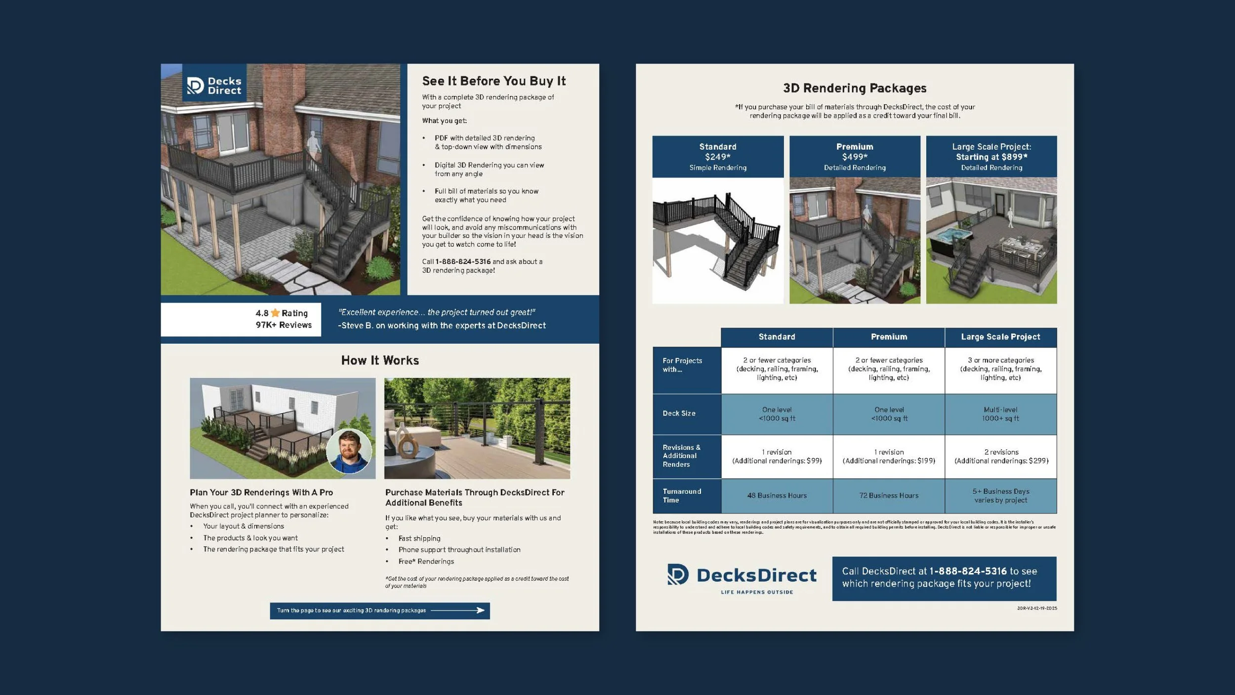 I was asked by our Sales team to create a DecksDirect Lookbook to give to their potential customers that showcased all the benefits of our own brand product lines.