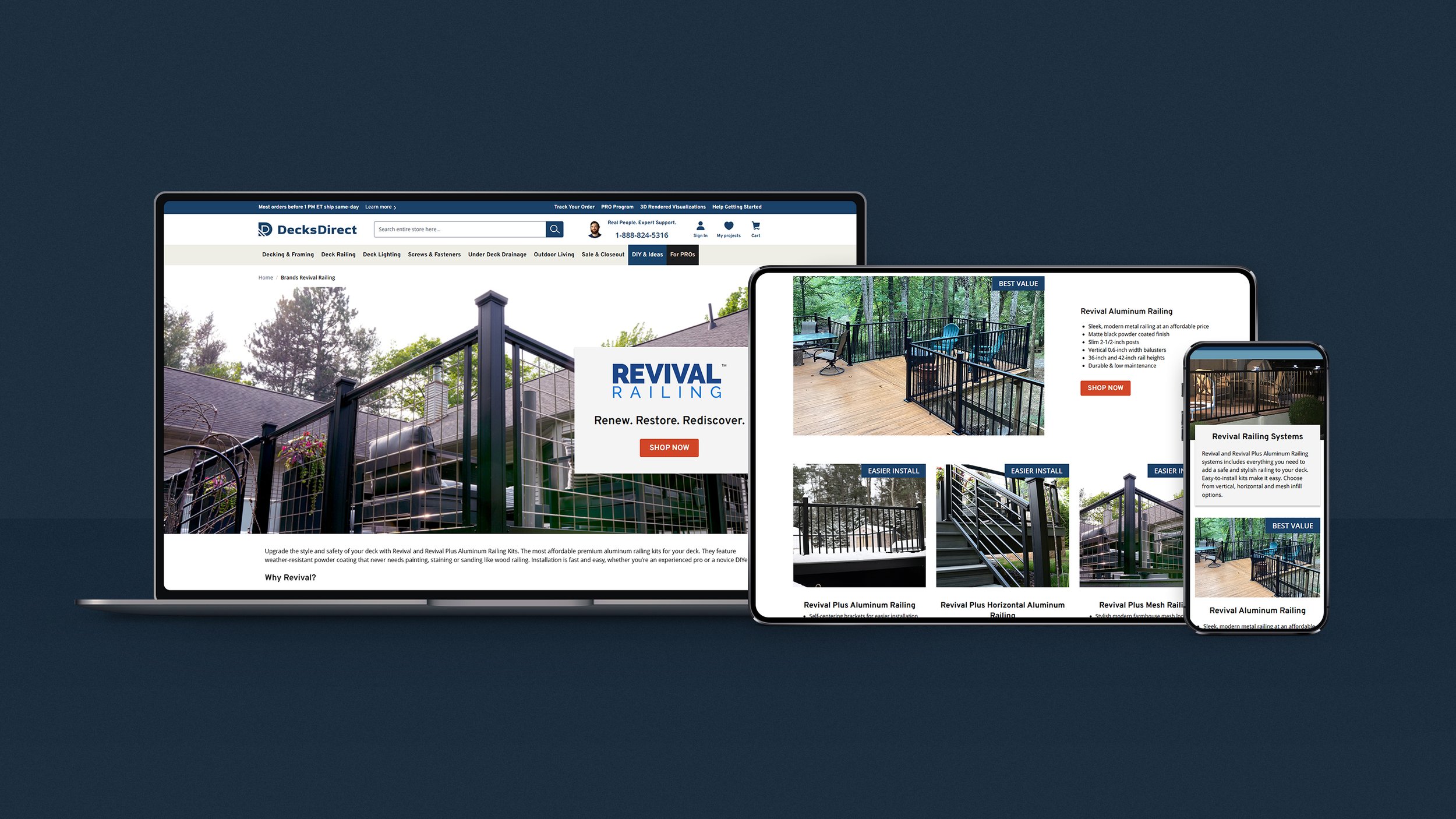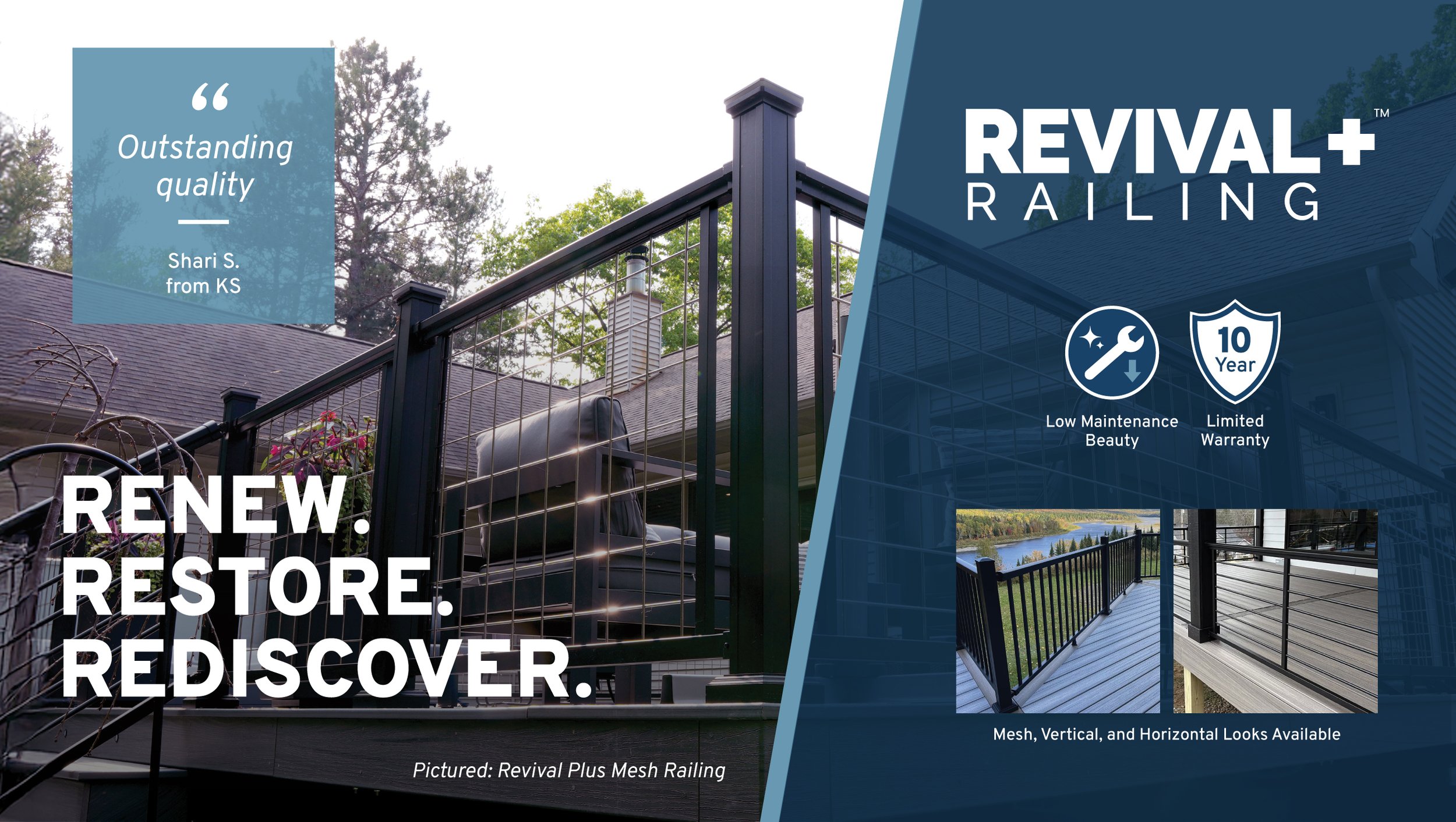 Upgrade the style and safety of your deck with Revival and Revival Plus Aluminum Railing Kits, the most affordable premium aluminum railing kits for your deck. They feature weather-resistant powder coating that never needs painting, staining or sanding like wood railing. Installation is fast and easy, whether you're an experienced pro or a novice DIYer.