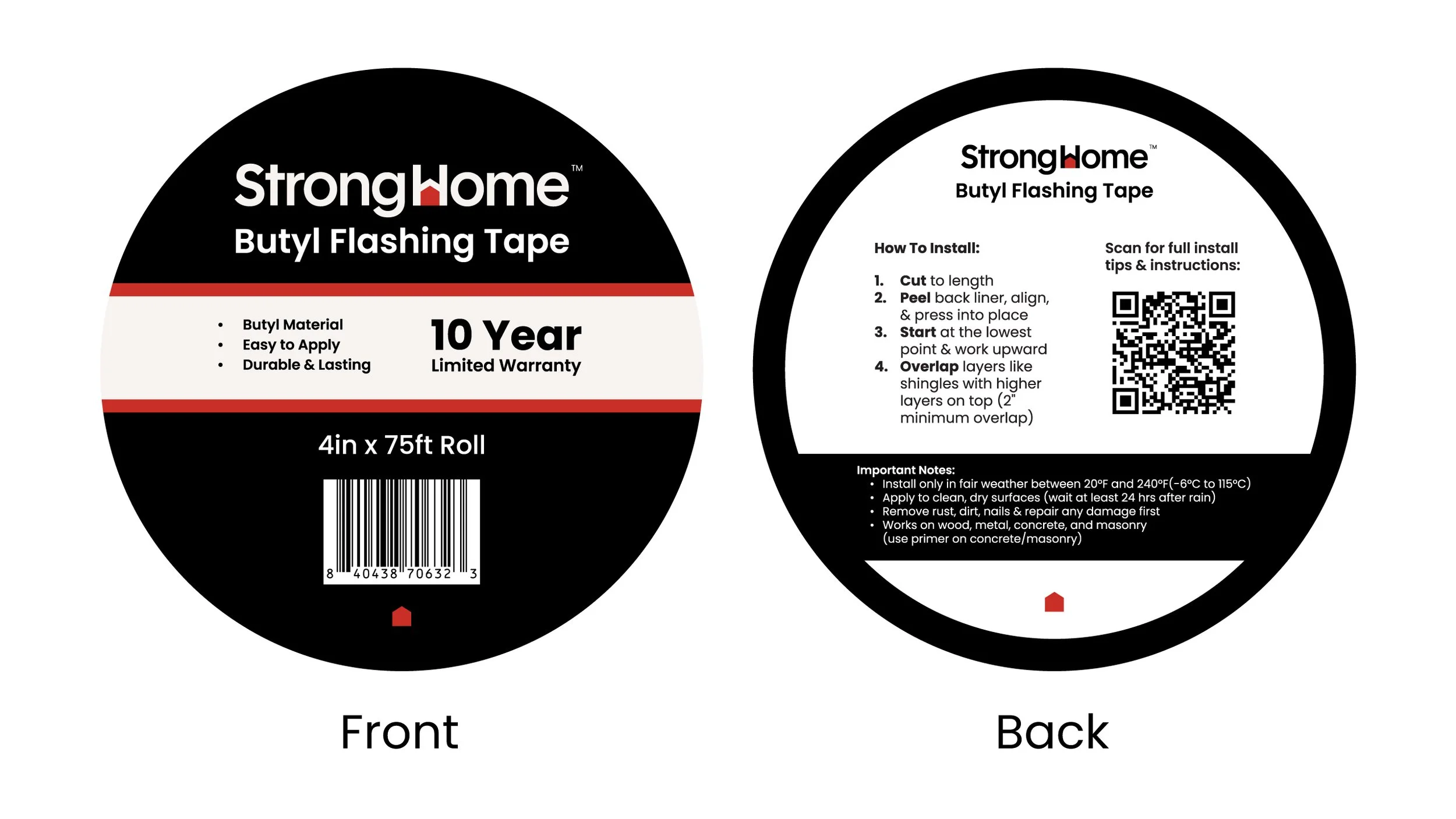 I was asked to create the packaging for the flashing tape to include the installation instructions, important notes, value props, specs, and the branding.
